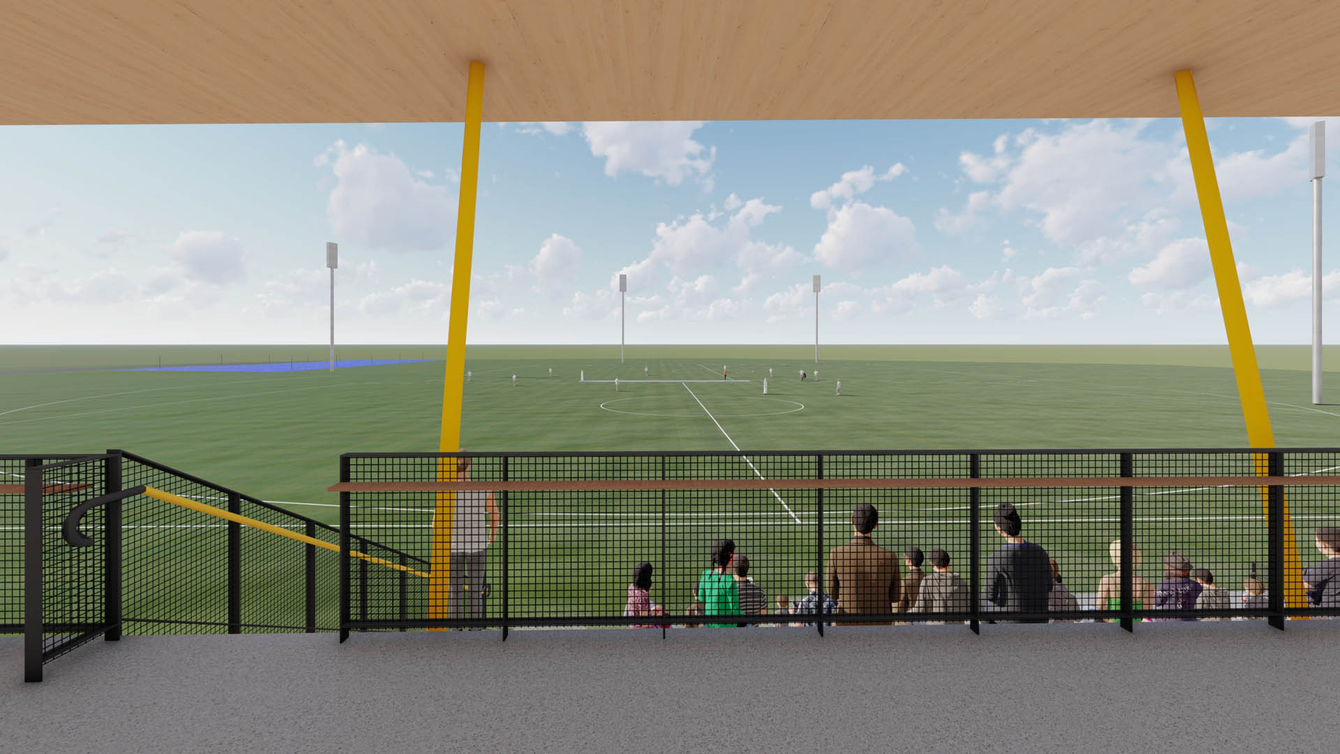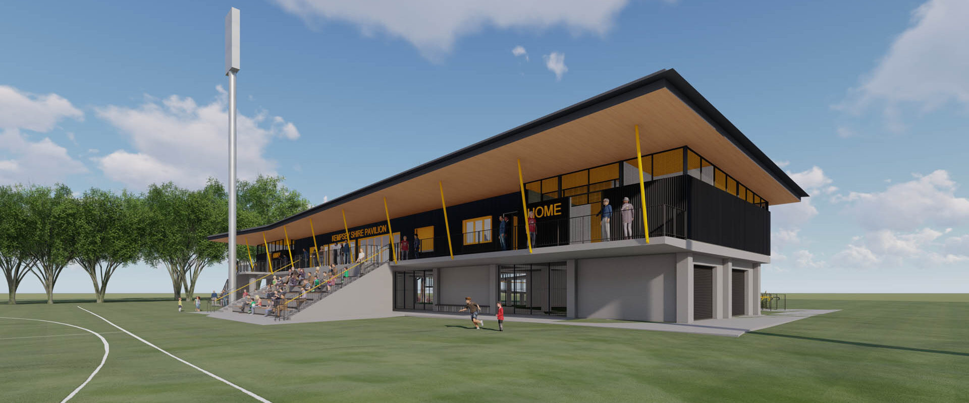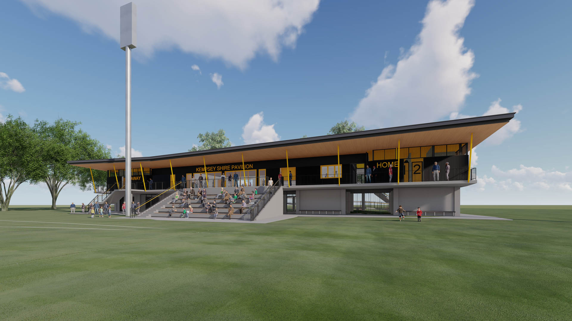 The proposed multi-purpose facility designed in collaboration with Kempsey Shire Council as part of a broader upgrade to local sporting fields, including a new running track, reconfigured layouts, shade structures, and improved parking. The elevated pavilion will provide flexible changerooms, amenities, a first aid room, office, kiosk, canteen, storage, and a large function space. Designed with flood resilience in mind, the building is raised one storey to allow water to flow beneath, ensuring year-round usability and community access.